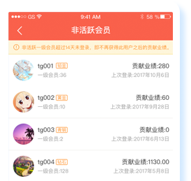 允許自定義會(huì)員淘汰機(jī)制,會(huì)員超過一定天數(shù)未登錄,則會(huì)斷開與推廣員關(guān)系不再產(chǎn)生返點(diǎn)。激勵(lì)推廣員鞏固會(huì)員關(guān)系。